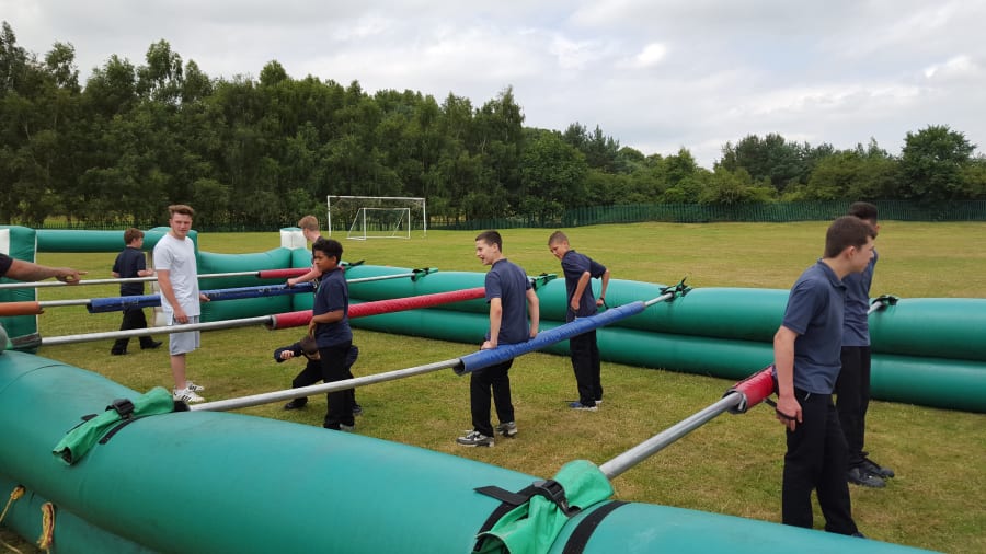 The size of our Human Table Top football game is 40ft x 20ft and is extremely popular for family fun days, Schools, Corporate team building days, Scouts etc.