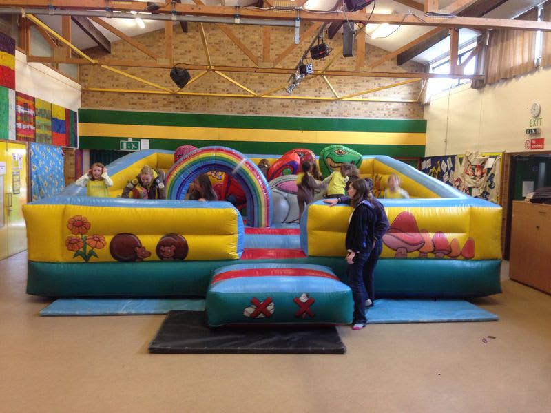 Make your event unforgettable with our Animal Farm Bouncy Castle, measuring a spacious 25ft x 25ft. 🎪 Perfect for private parties, school fetes, and corporate events, this bouncy castle features a charming Farm Yard theme complete with inflatable characters inside. 🐷🐮🐔