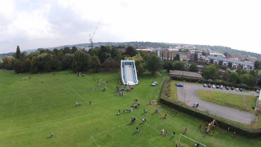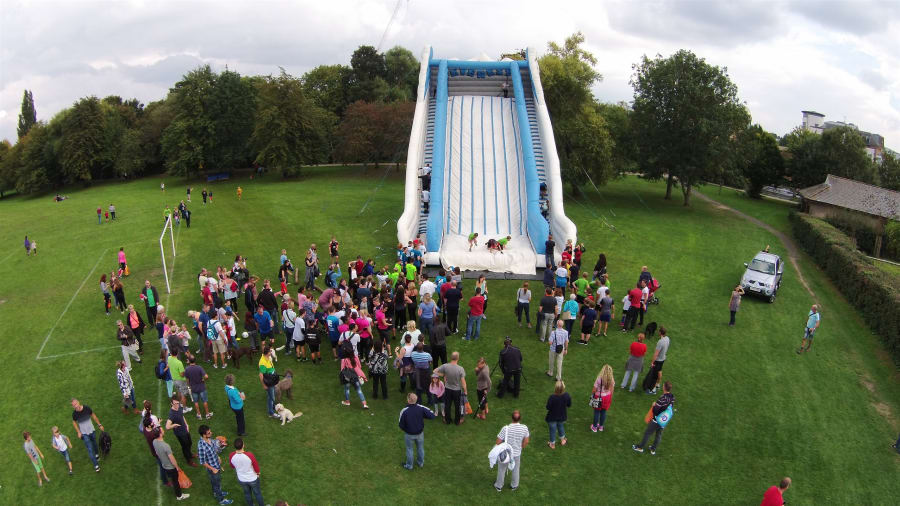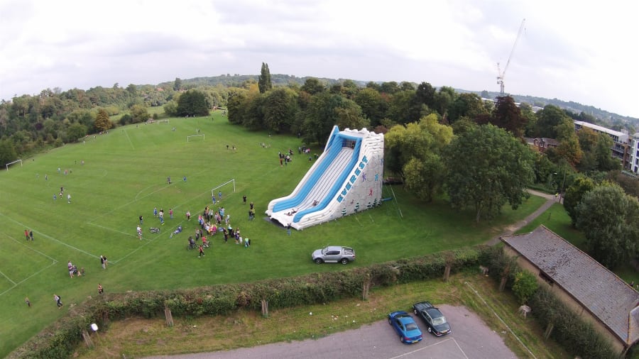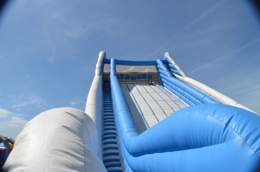 THIS IS THE BIGGEST INFLATABLE SLIDE IN EUROPE standing 60ft long and 55ft high.