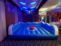 The surfing simulator comprises of an inflatable themed inflatable base, with a mounted rocking surf board in the middle.